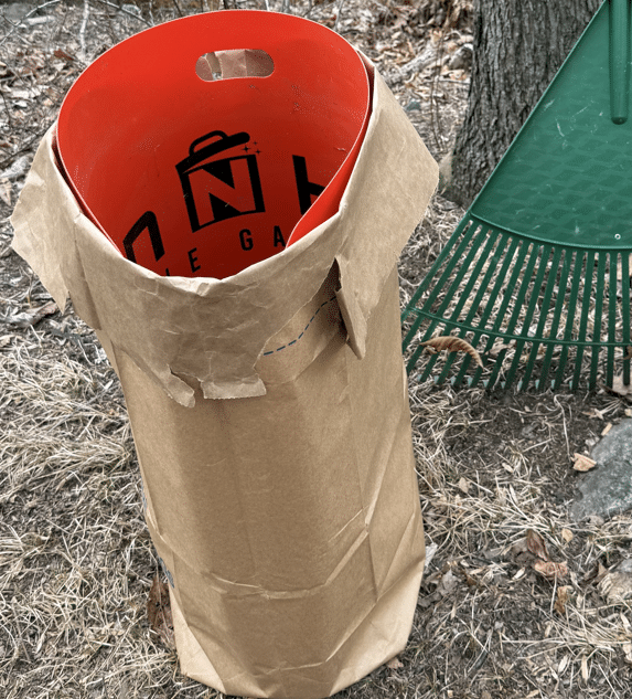 Fill the bag with debris by hand or using a rake to transfer debris into Can-N-Hand.