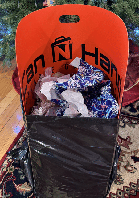 When finished, simply grab the handle and pull Can-N-Hand out of the bag.
